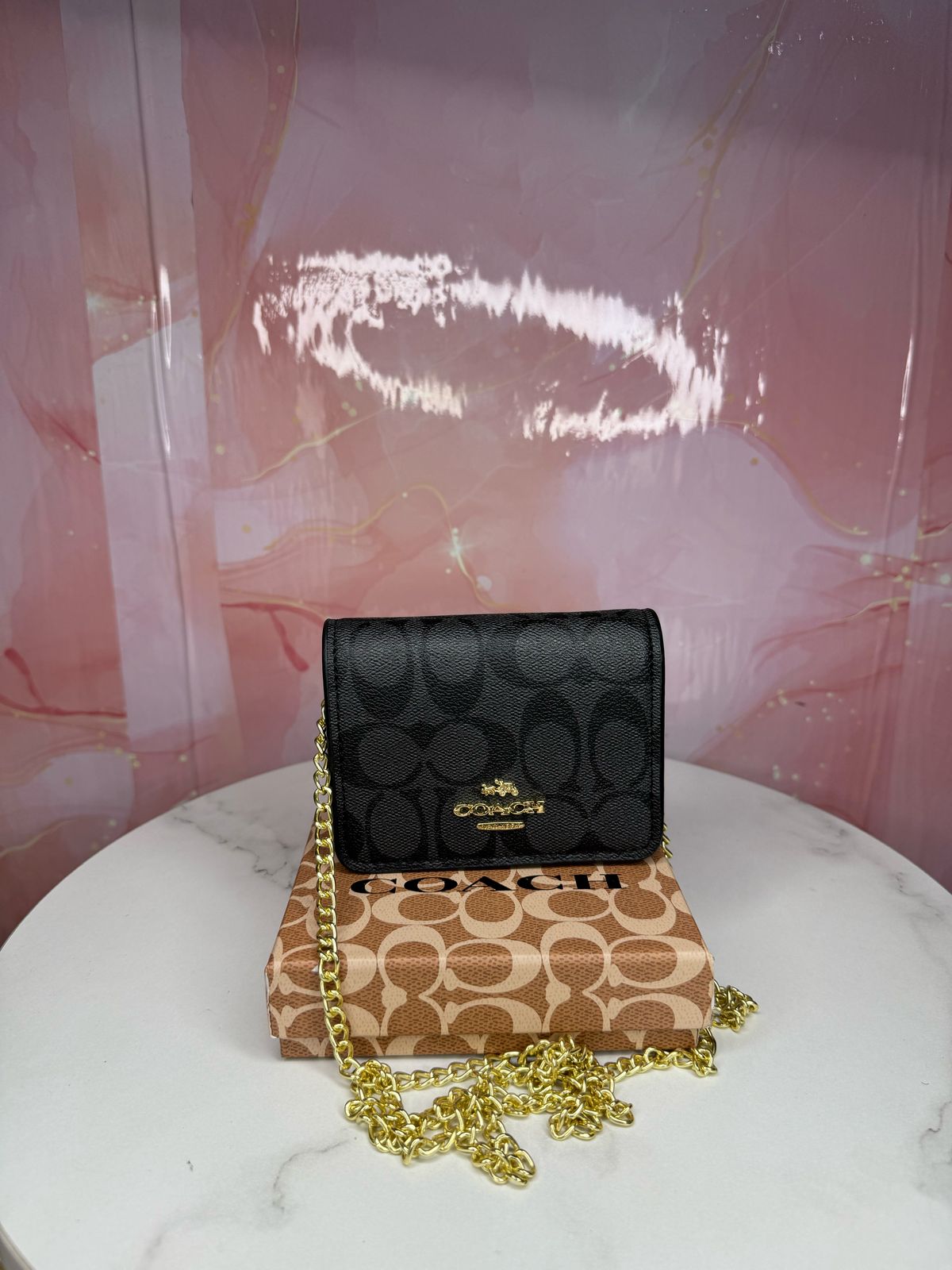 Coach Signature Mini Wallet On Chain Shoulder Card Case